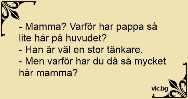 - Mamma? Varför har pappa så lite hår på huvudet?