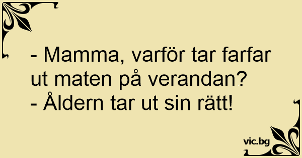 - Mamma, varför tar farfar ut maten på verandan?