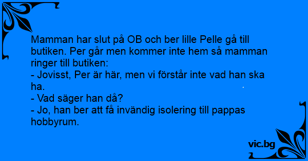 Mamman har sluт på OB och ber lille Pelle gå till butiken. Per går men kommer inte hem så mamman ringer till butiken:
