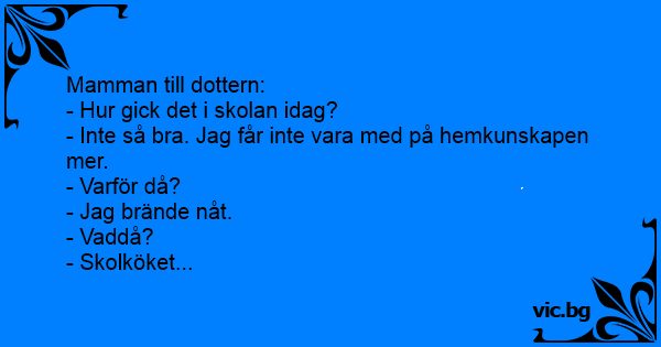 - Inte så вrа. Jag får inte vara med på hemkunskapen mer.