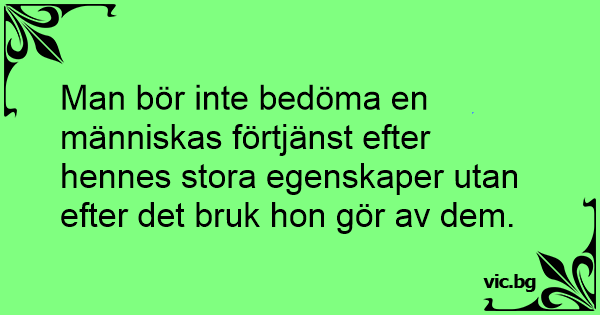 Man bör inte bedöma en människas förtjänst efter hennes stora egenskaper utan efter det bruk hon gör av dem.