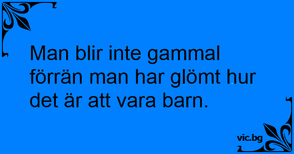 Man blir inte gammal förrän man har glömt hur det är att vara barn.