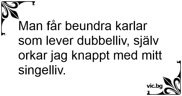 Man får beundra karlar som lever dubbelliv, själv orkar jag knappt med mitt singelliv.