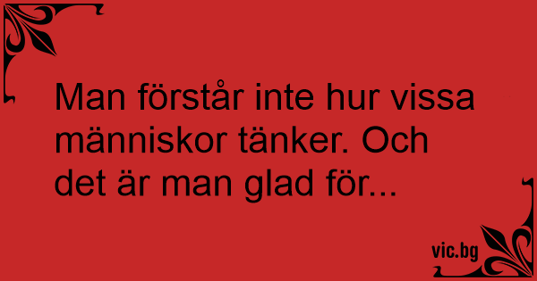 Man förstår inte hur vissa människor tänker. Och det är man glad för...
