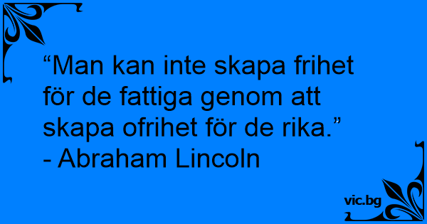 “Man kan inte skapa frihet för de fattiga genom att skapa ofrihet för de rika.”