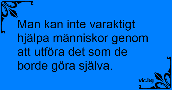 Man kan inte varaktigt hjälpa människor genom att utföra det som de borde göra själva.