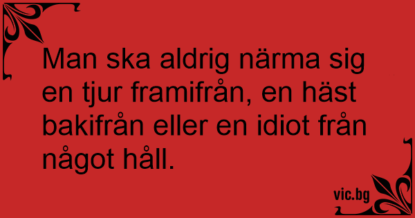 - "Не приближавай бивол отпред, кон отзад и глупак откъм всички посоки." - народна мъдрост...