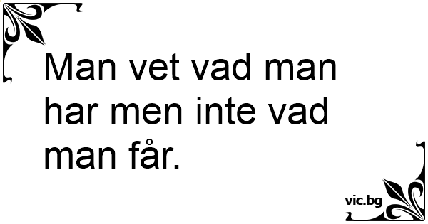 Man vet vad man har men...