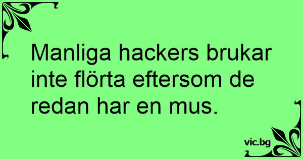 Manliga hackers brukar inte flörta eftersom de redan har en mus.