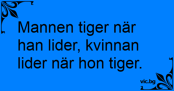 Mannen tiger när han lider, kvinnan lider när hon tiger.