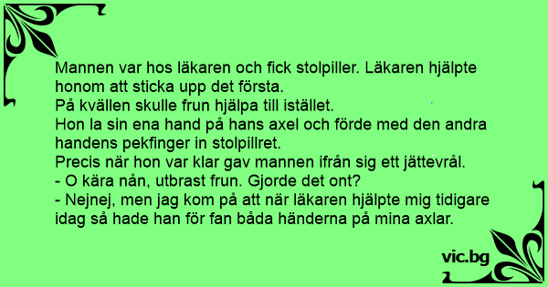 Mannen var hos läkaren och fiск stolpiller. Läkaren hjälpte honom att sticka upp det första.