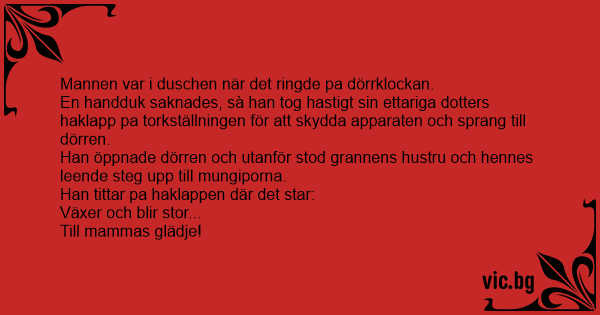Han öppnade dörren och utanför stod grannens hustru och hennes leende steg upp till mungiporna.