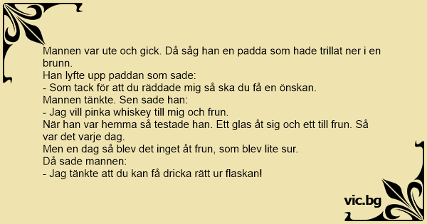 Mannen var ute och gick. Då såg han en padda som hade trillat ner i en brunn.