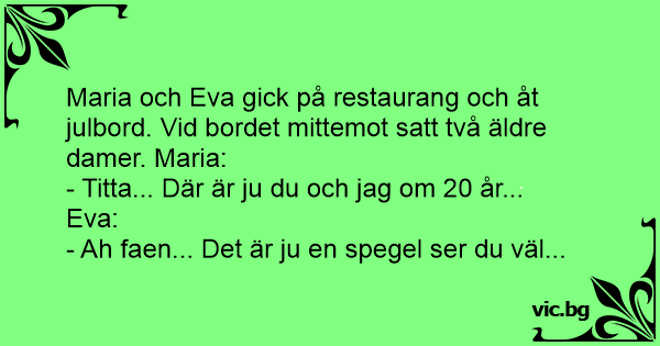 Maria och Eva gick på restaurang och åt julbord. Vid bordet mittemot satt två äldre damer. Maria: