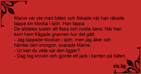 De alldeles lusten att fiska och rodde iland. När han kom hem frågade grannen hur det gått.