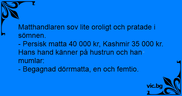 Matthandlaren sov lite oroligt och pratade i sömnen.