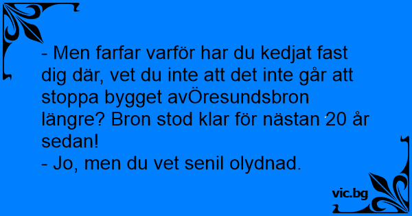 - Men farfar varför har du kedjat fast dig där, vet du inte att det inte går att stoppa bygget avÖresundsbron längre? Bron stod klar för nästan 20 år sedan!