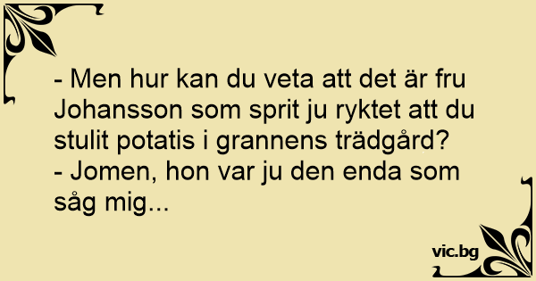 - Men hur kan du veta att det är fru Johansson som sprit ju ryktet att du stulit potatis i grannens trädgård?