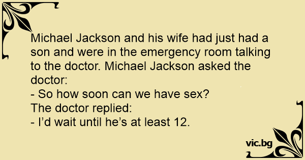 Michael Jackson and his wife had just had a son and were in the emergency room talking to the doctor. Michael Jackson asked the doctor: