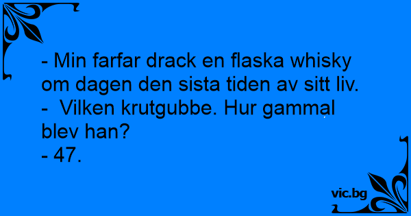 - Min farfar drack en flaska whisky om dagen den sista tiden av sitt liv.