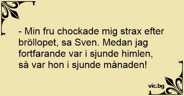 - Min fru chockade mig strax efter bröllopet, sa Sven. Medan jag fortfarande var i sjunde himlen, så var hon i sjunde månaden!