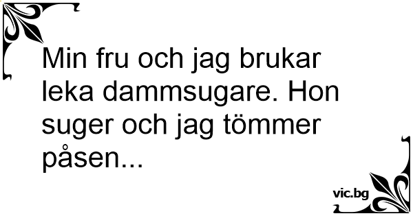 Min fru och jag brukar leka dammsugare. Hon suger och jag tömmer påsen...