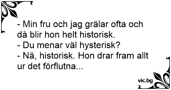 - Min fru och jag grälar ofta och då blir hon helt historisk.