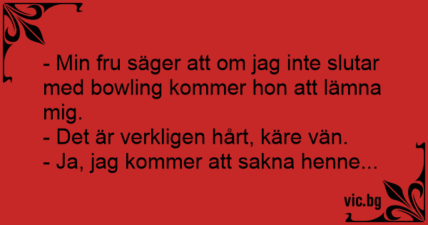 - Min fru säger att om jag inte slutar med bowling kommer hon att lämna mig.