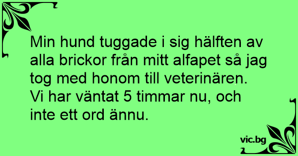 Min hund tuggade i sig hälften av alla brickor från mitt alfapet så jag tog med honom till veterinären.
