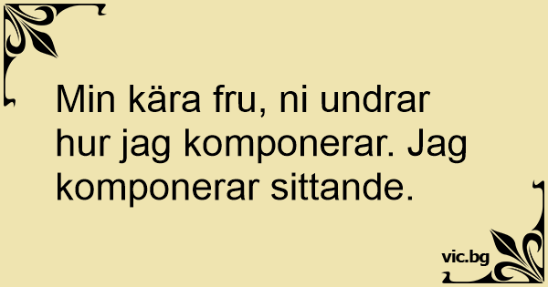 Min kära fru, ni undrar hur jag komponerar. Jag komponerar sittande.