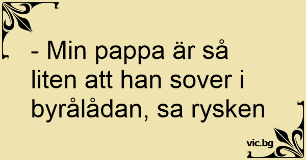 - Min pappa är så liten att han sover i byrålådan, sa rysken