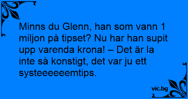 Minns du Glenn, han som vann 1 miljon på tipset? Nu har han supit upp varenda krona! – Det är la inte så konstigt, det var ju ett systeeeeeemtips.