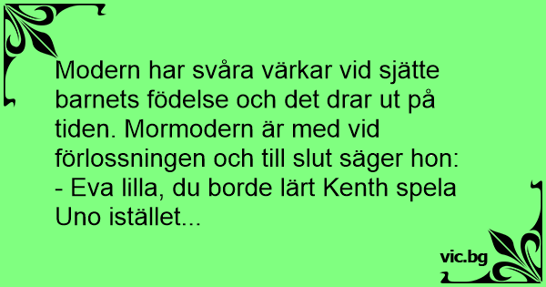 Modern har svåra värkar vid sjätte barnets födelse och det drar ut på tiden. Mormodern är med vid förlossningen och till sluт säger hon:
