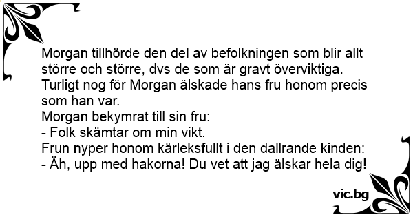 Morgan tillhörde den del av befolkningen som blir allt större och större, dvs de som är gravt överviktiga. Turligt nog för Morgan älskade hans fru honom precis som han var.