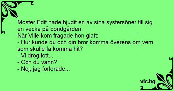 Moster Edit hade bjudit en av sina systersöner till sig en vecka på bondgården.