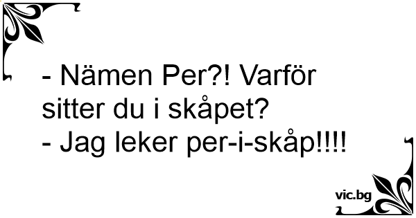- Nämen Per?! Varför sitter du i skåpet?