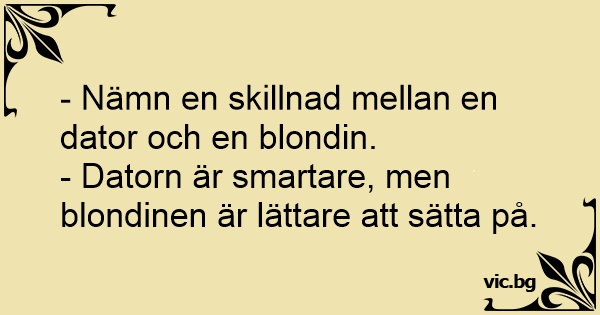 - Nämn en skillnad mellan en dator och en blondin.