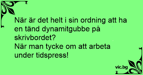 När är det helt i sin ordning att ha en tänd dynamitgubbe på skrivbordet?