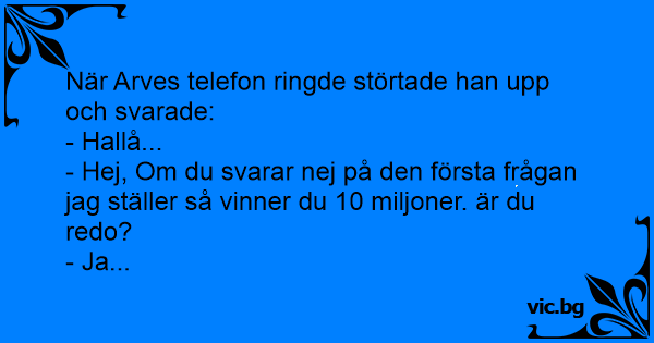 - Hej, Om du svarar nej på den första frågan jag ställer så vinner du 10 miljoner. är du redo?