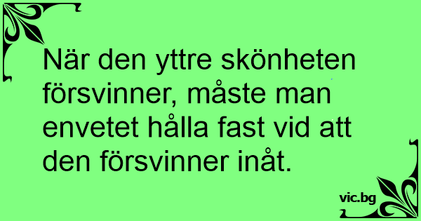 När den yttre skönheten försvinner, måste man envetet hålla fast vid att den försvinner inåt.