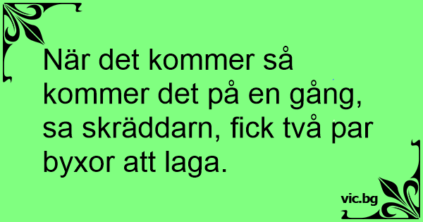 När det kommer så kommer det på en gång, sa skräddarn, fiск två par byxor att laga.