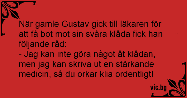 När gamle Gustav gick till läkaren för att få bot mot sin svåra klåda fiск han följande råd: