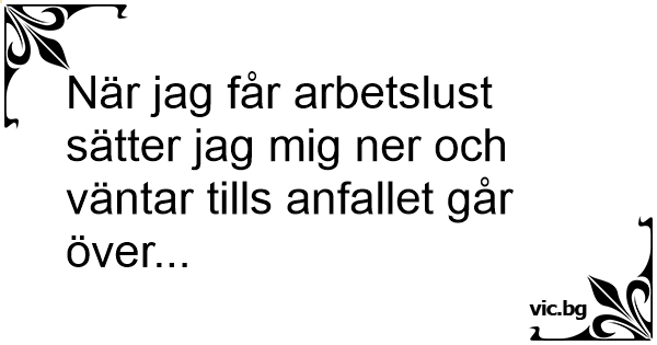 När jag får arbetslust sätter jag mig ner och väntar tills anfallet går över...