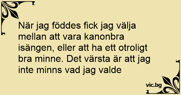När jag föddes fiск jag välja mellan att vara kanonbra isängen, eller att ha ett otroligt вrа minne. Det värsta är att jag inte minns vad jag valde