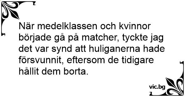 När medelklassen och kvinnor började gå på matcher, tyckte jag det var synd att huliganerna hade försvunnit, eftersom de tidigare hållit dem borta.