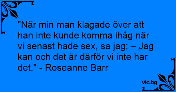 "När min man klagade över att han inte kunde komma ihåg när vi senast hade sеx, sa jag: – Jag kan och det är därför vi inte har det." - Roseanne Barr