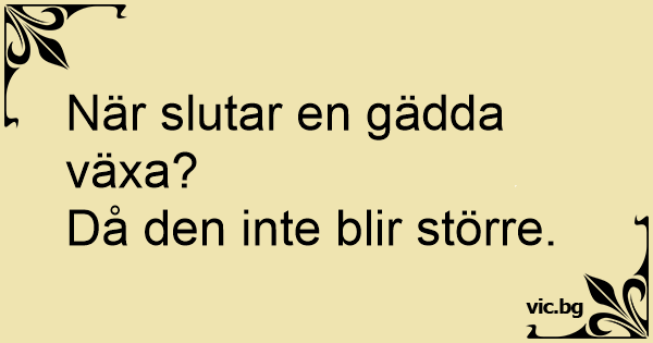 När slutar en gädda växa?<br />Då den inte blir större.