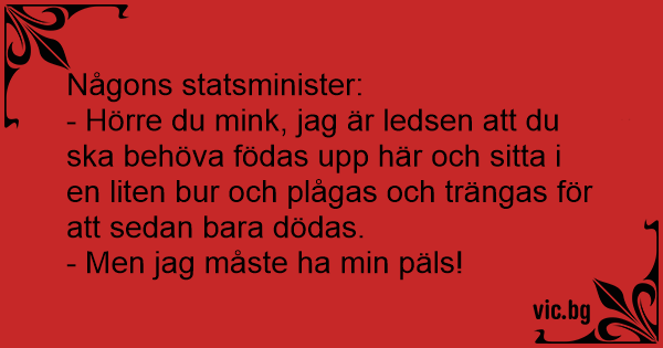 - Hörre du mink, jag är ledsen att du ska behöva födas upp här och sitta i en liten bur och plågas och trängas för att sedan bara dödas.
