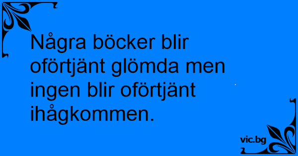 Några böcker blir oförtjänt glömda men ingen blir oförtjänt ihågkommen.