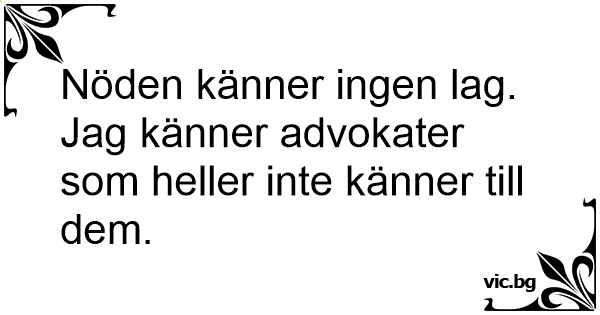 Nöden känner ingen lag. Jag känner advokater som heller inte känner till dem.